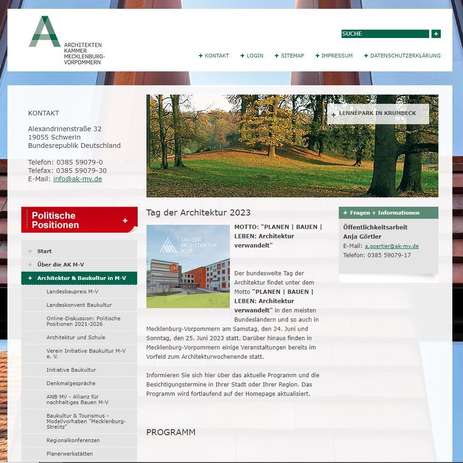 30.09.2024 Der Verein Initiative Baukultur Mecklenburg-Vorpommern e. V. informiert auf dem Bürgerfest zum Tag der Deutschen Einheit zu Erhalt und Förderung des baukulturellen Erbes in Mecklenburg-Vorpommern. Eine gute Gelegenheit, mehr über ausgewählte ...mehr... -